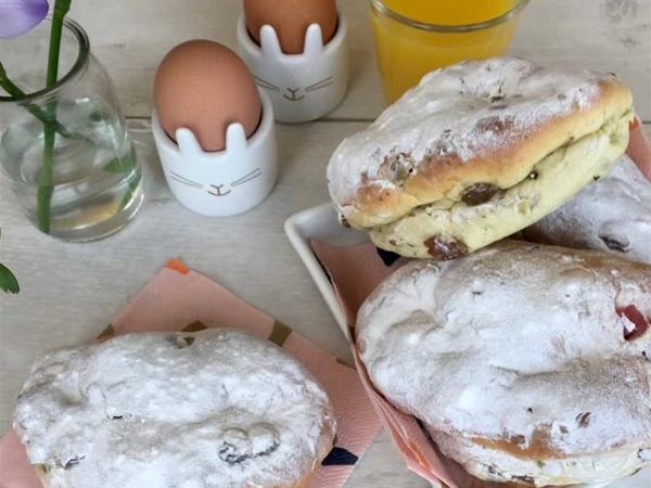 Heerlijk één-persoons stolletje met rozijnen, krenten, noten, vruchten en amandelspijs.
